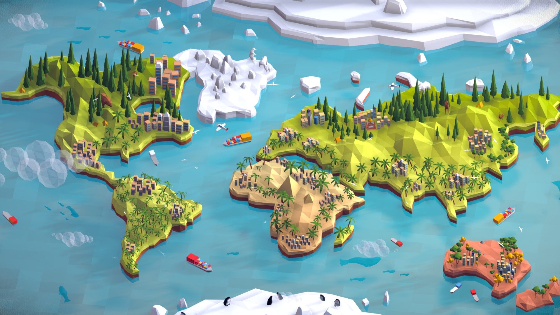 I believe adding a bit more texture and detail to the materials could significantly enhance the game. While I've always appreciated the low-poly, flat-color aesthetic, it can make discerning movement challenging and feels a bit too indie with its sole colors. Introducing an edge shader, possibly paired with normal mapping for the islands and materials on top of vertex variation, could improve their interaction with light, providing more visual interest and depth. The aim would be to maintain the single-color appearance from a distance. In the long run, adopting a basic material like felt or plastic in terms of roughness and normals, without the need for albedo, along with consistent poly sizes and slightly more directional, varied lighting, could bring about positive changes.